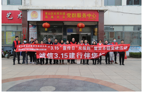為進一步普及社區(qū)群眾消費者權(quán)益知識,增強日常消費、網(wǎng)絡(luò)消費、金融消費的維權(quán)意識。3月15日下午,藍天集團紀委綜合部黨支部和煙臺聯(lián)合產(chǎn)權(quán)交易服務(wù)有限公司黨支部邀請聯(lián)合產(chǎn)權(quán)“資本鏈”黨總支聯(lián)盟單位,以紅色黨建為引領(lǐng),以消費者權(quán)益日為契機,在初家街道鳳凰社區(qū)開展“3.15”宣傳日雙報到暨資本鏈黨建活動。集團黨委委員、聯(lián)合產(chǎn)權(quán)黨支部書記、董事長初志杰同志,集團黨委委員、紀委書記湯志厚同志,以普通黨員身份參加。