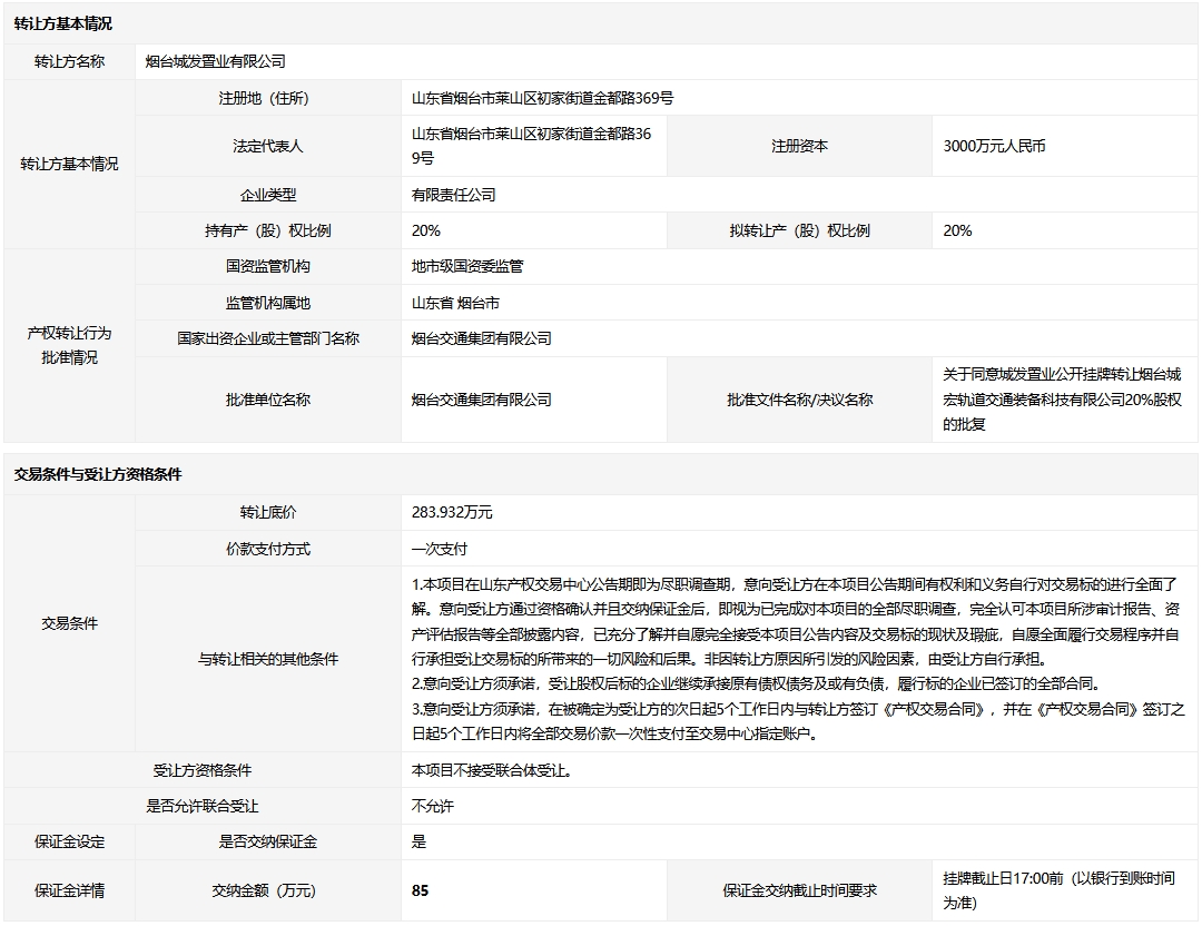 轉(zhuǎn)讓方:煙臺(tái)城發(fā)置業(yè)有限公司