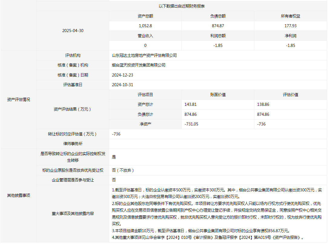 轉(zhuǎn)讓方:煙臺公共事業(yè)集團(tuán)有限公司
