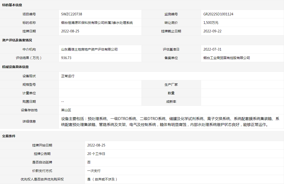 轉(zhuǎn)讓方:煙臺恒清源環(huán)??萍加邢薰?/li>