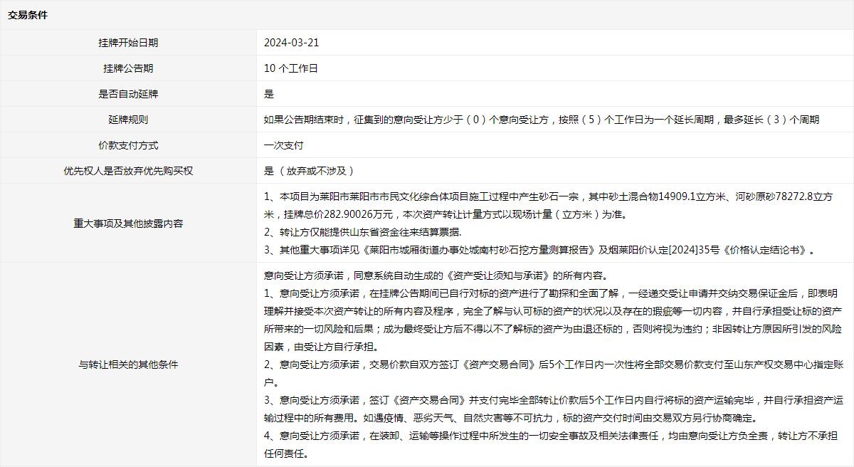 煙臺(tái)市城市建設(shè)發(fā)展集團(tuán)有限公司資源開(kāi)發(fā)分公司塔山北路施工產(chǎn)出砂石出售項(xiàng)目交易公...
