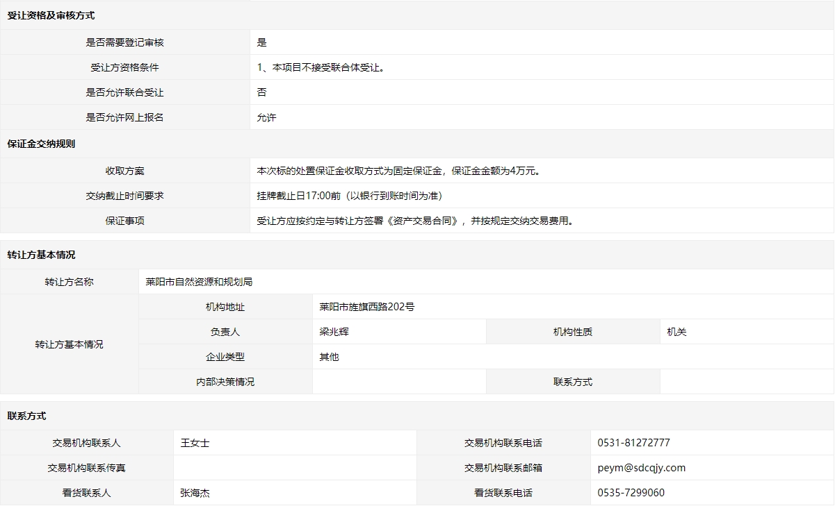 - 轉(zhuǎn)讓方:萊陽(yáng)市自然資源和規(guī)劃局