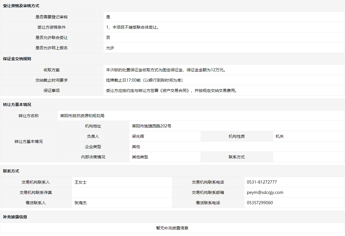 轉(zhuǎn)讓方:萊陽(yáng)市自然資源和規(guī)劃局