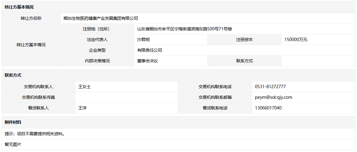 轉(zhuǎn)讓方:煙臺生物醫(yī)藥健康產(chǎn)業(yè)發(fā)展集團(tuán)有限公司