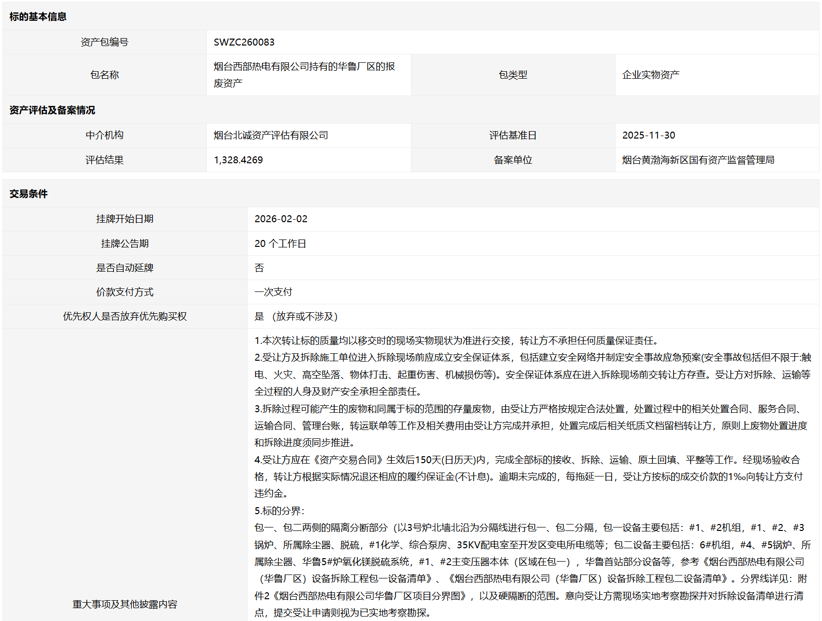 煙臺西部熱電有限公司持有的華魯廠區(qū)的報廢資產(chǎn)