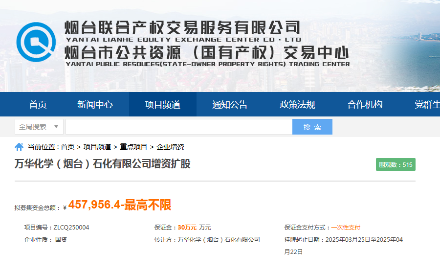 近日,我市重點國企混改項目“萬華化學(xué)(煙臺)石化有限公司增資擴股”通過山東產(chǎn)權(quán)交易中心與煙臺聯(lián)合產(chǎn)權(quán)交易服務(wù)有限公司(以下簡稱“煙臺聯(lián)合產(chǎn)權(quán)”)聯(lián)合掛牌,成功實現(xiàn)45.79億元增資目標。本次引入境外投資方1家(增資后占股25%),為科威特石化工業(yè)公司(科威特石油公司全資子公司),該公司成立于1963年,位于科威特艾哈邁迪省,注冊資本6億科威特第納爾(約折合人民幣139.38億元),是科威特石化領(lǐng)域的核心企業(yè),在全球石化行業(yè)中占據(jù)重要地位。此次交易創(chuàng)下我市國有企業(yè)增資擴股單筆最高交易紀錄,標志著我市要素交易平臺服務(wù)國企改革取得新突破。